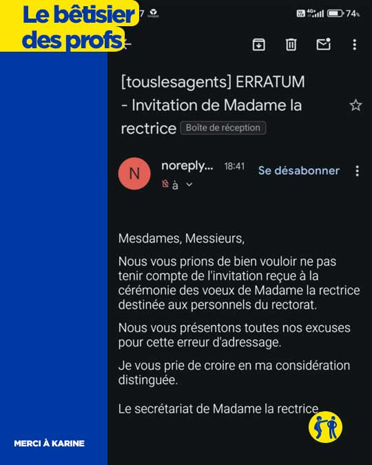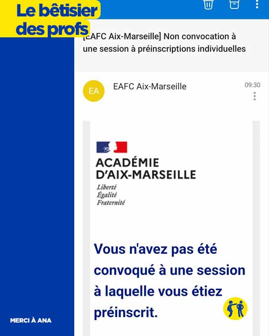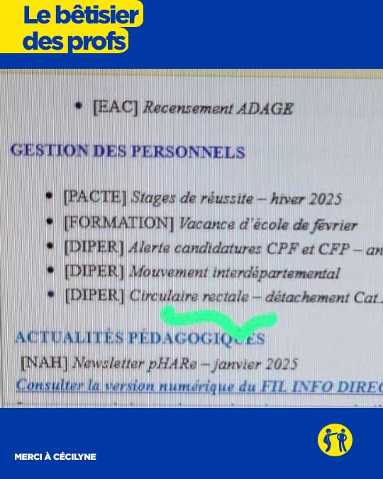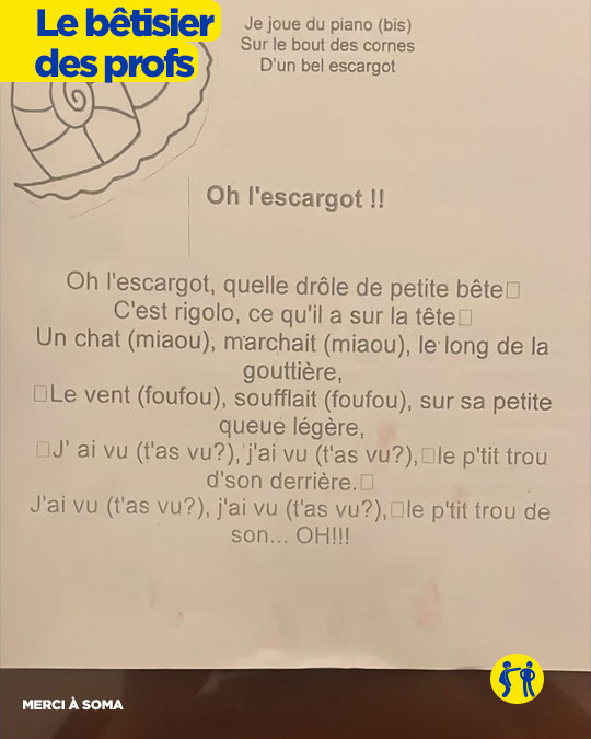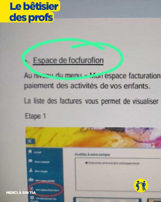 Une focfurofion, c’est comme une facture. Mais quand tu la paies, tellement la facture est chère, t’as mal au cul. Nous ne voyons pas d’autres explications. Accueil de loisirs, garderie, école ou services administratifs de l’Education nationale, voici un nouvel épisode de notre bêtisier des profs.