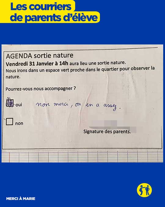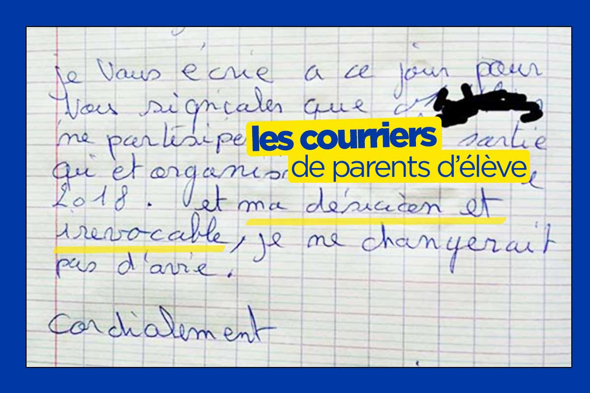 A contrario, un courrier avec au mieux un reproche et au pire une insulte, ça peut assombrir la journée. Voici 10 courriers de parents désagréables.