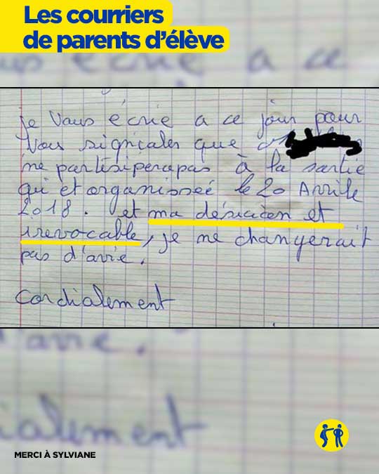 « Une désicion irevocable », les pires courriers de parents à l’école