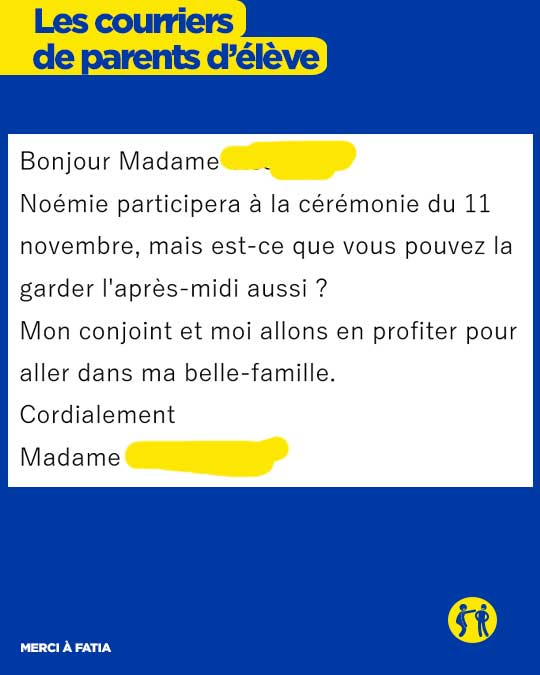 On adore la réponse de l’enseignante dans le dernier courrier.